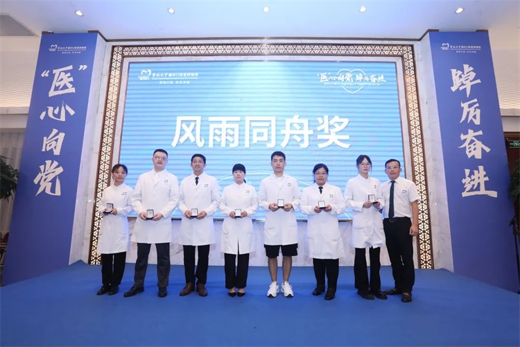 为表彰鞠躬尽瘁,以虔诚之心奉献医院发展所做出的贡献的忠诚员工,会上,穗华口腔医院大家长郑俊飞先生,为在医院工作满一年和三年的员工颁发“风雨同舟纪念章”。感谢他们多年来与医院共成长、同发展,勉励广大员工继续发扬爱岗敬业,辛勤奉献的精神,砥砺前行,助力医院发展!