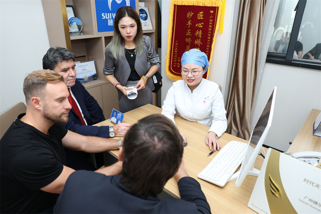 在穗华专家的陪同下,他们不仅参观了医院的诊疗环境、数字化正畸中心与影像中心,更对穗华口腔将“厚德行医”、“大医精诚”等中国传统医德理念融入现代医疗管理的践行与企业人文关怀表示钦佩。